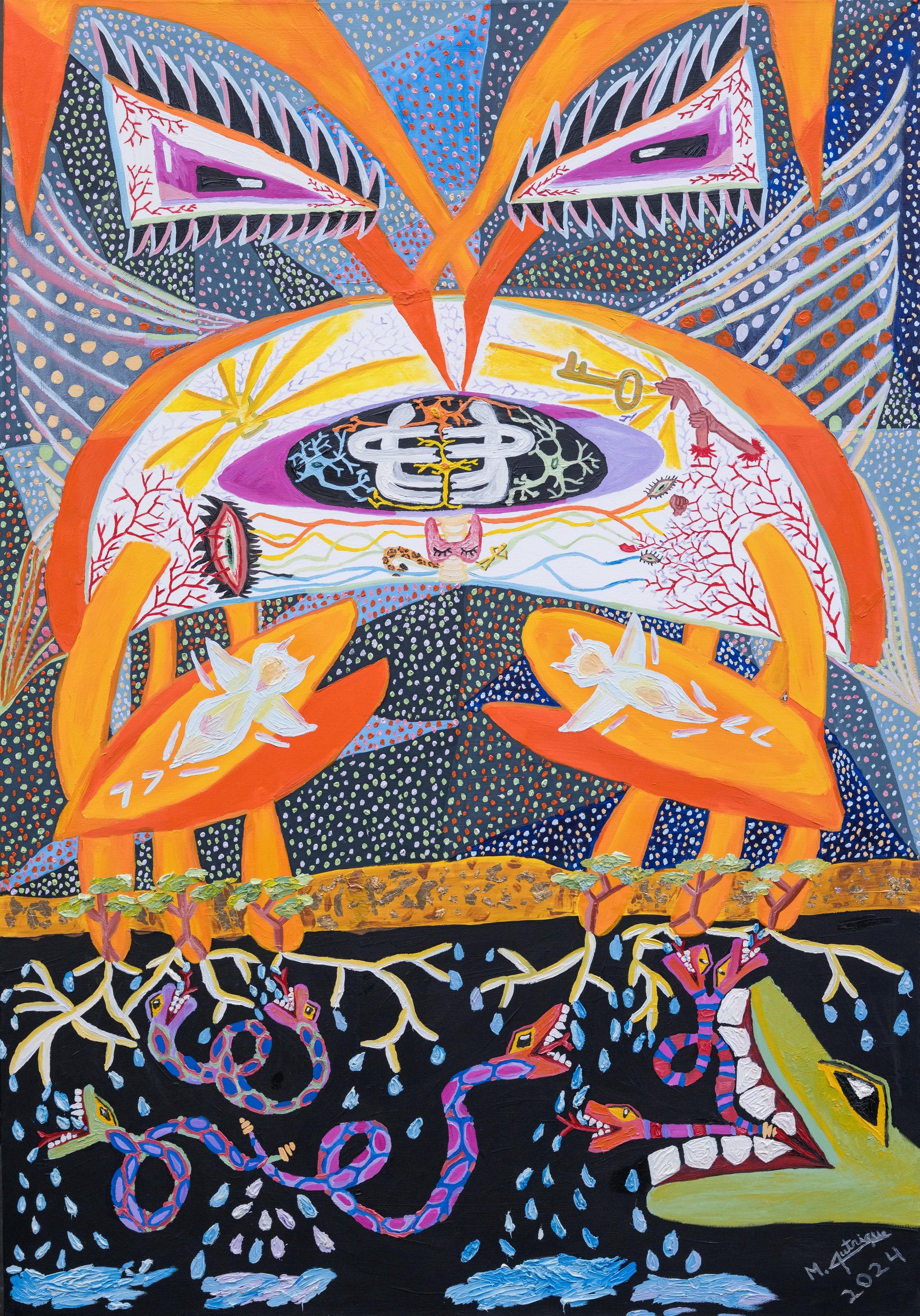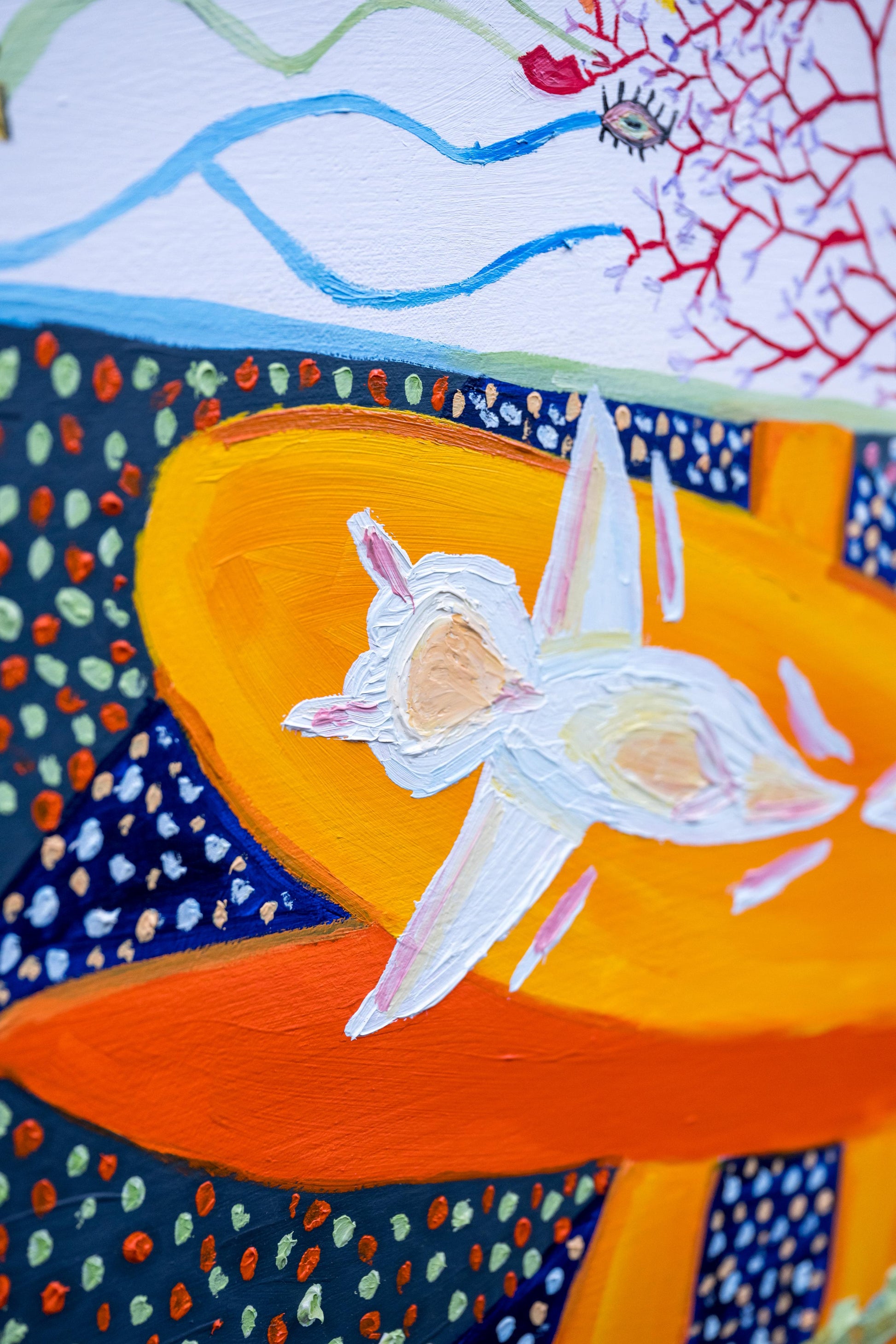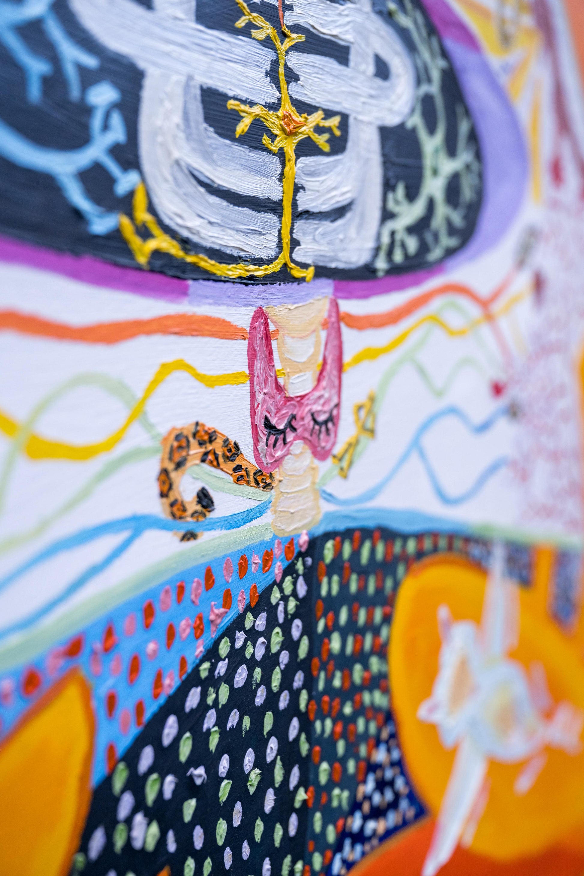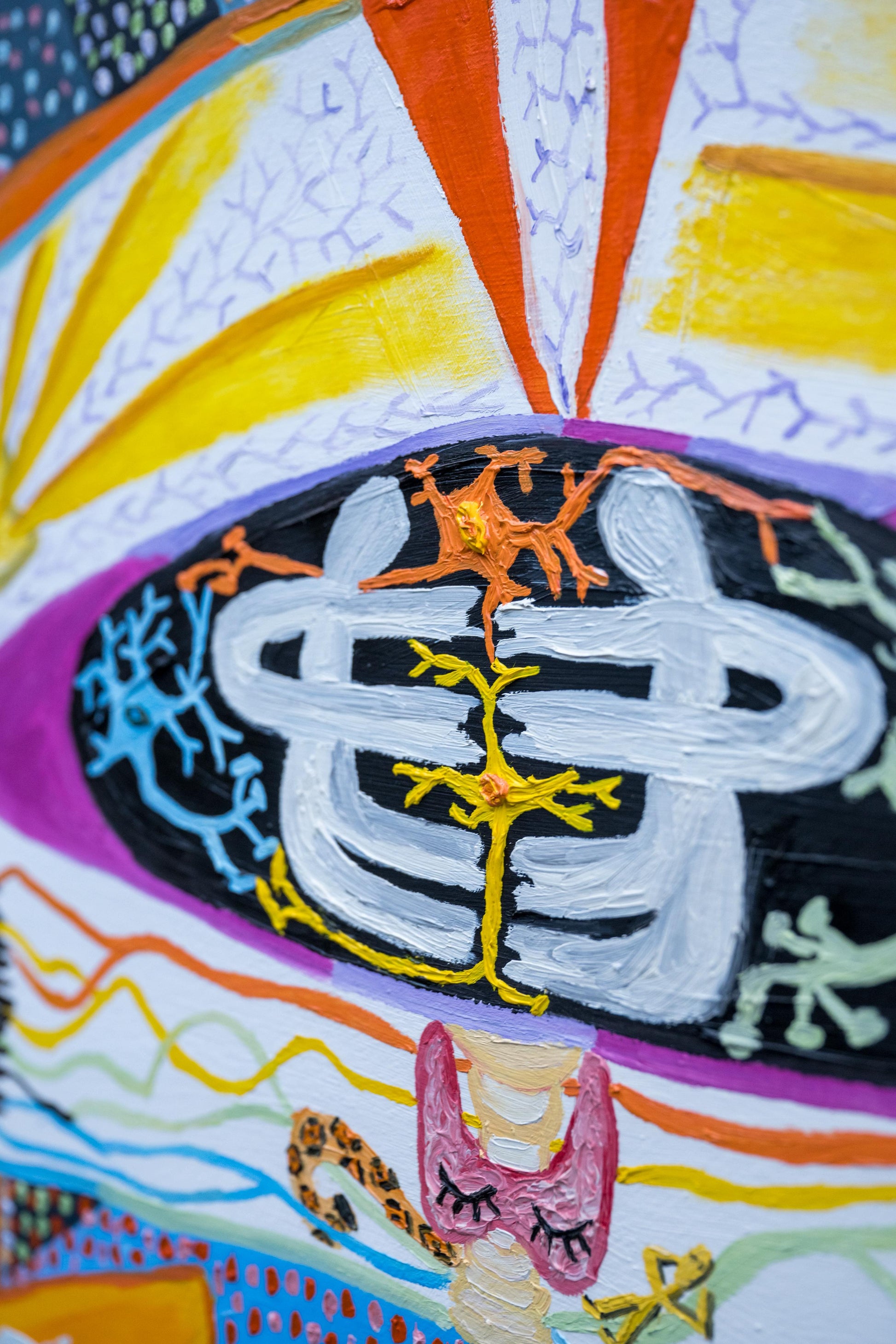 Esta pieza tiene muchas representaciones de mi relación con mi tiroides y mi cuerpo y el camino que estamos recorriendo juntos los tres para sanarla 🦋.