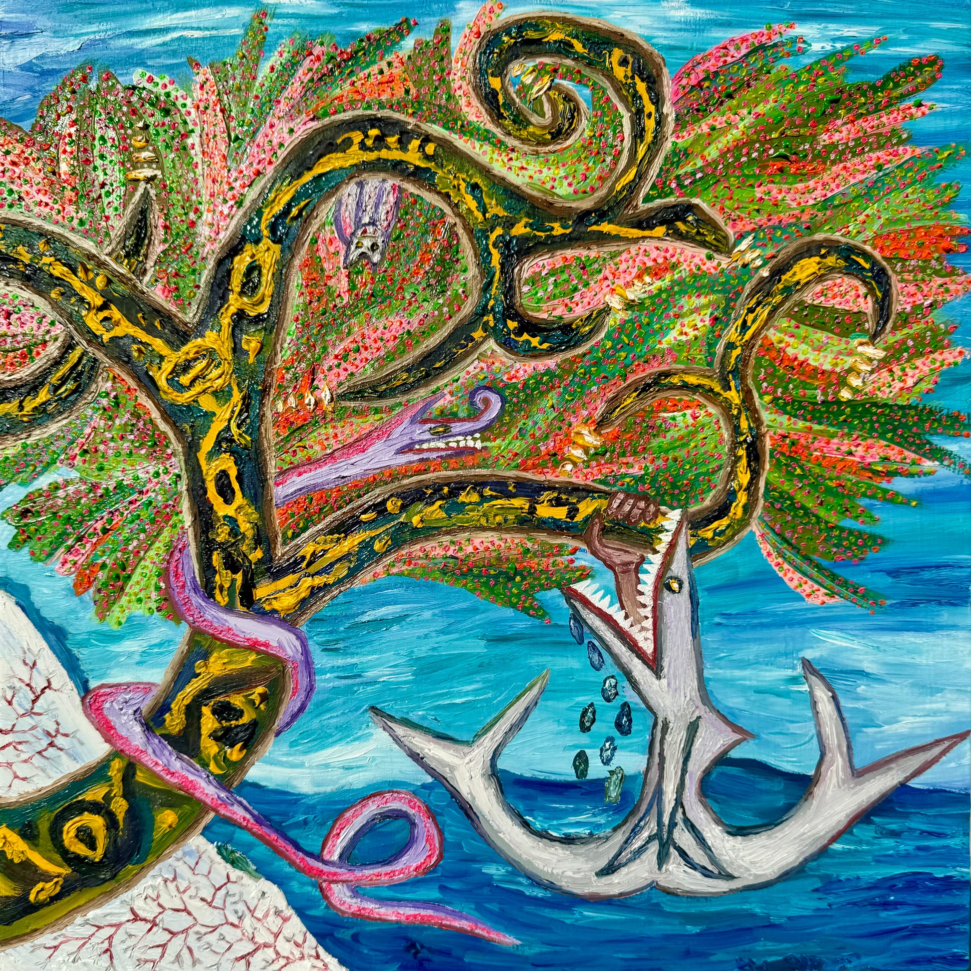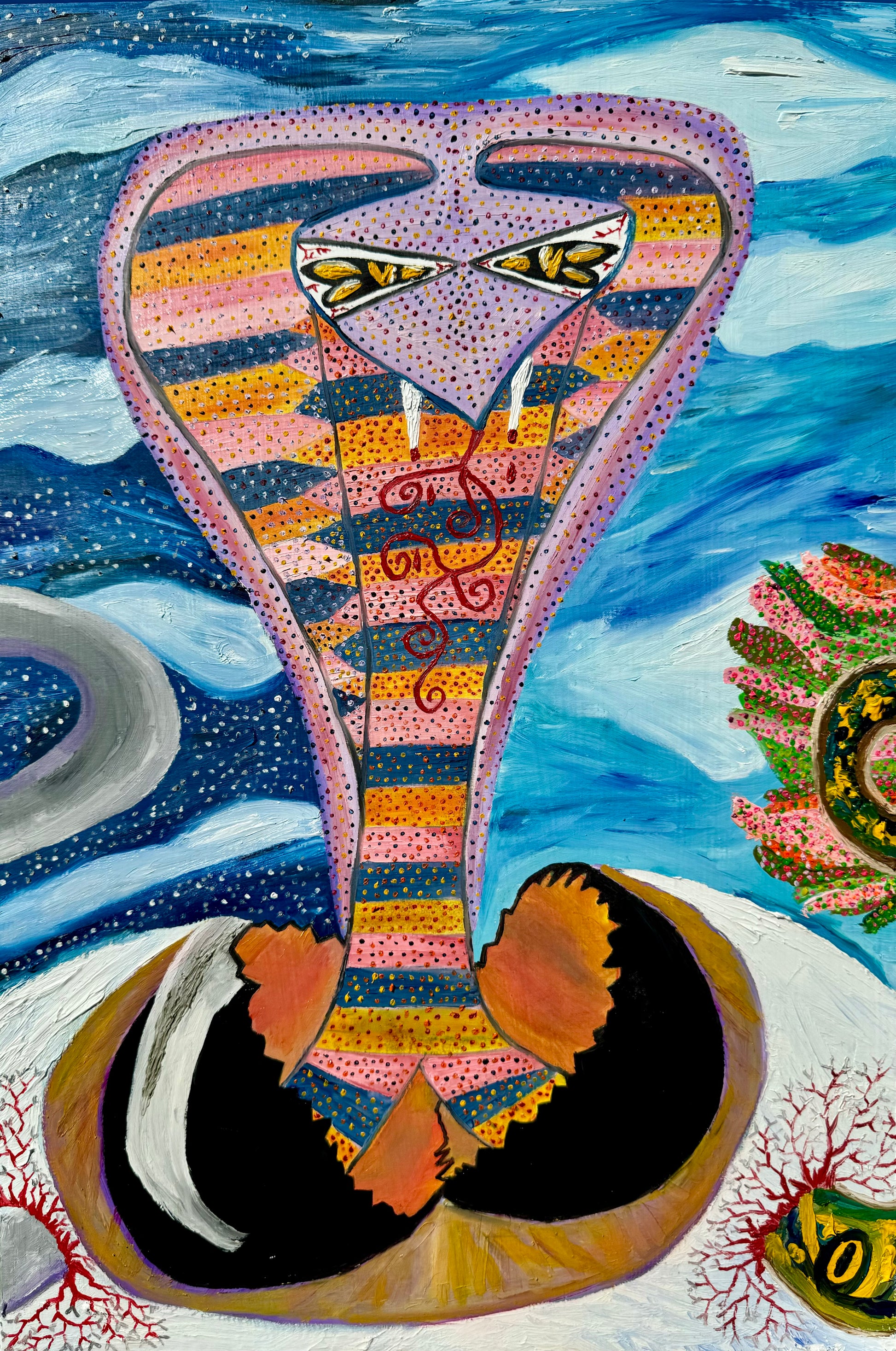 Para mí esta obra representa la coexistencia de la luz y la oscuridad en cada uno de nosotros, el cómo una no puede existir sin la otra. Cuando aceptamos tanto nuestra luz como nuestra oscuridad es cuando podemos “nacer” en este mundo, es cuando podemos convertirnos en la persona que realmente somos.