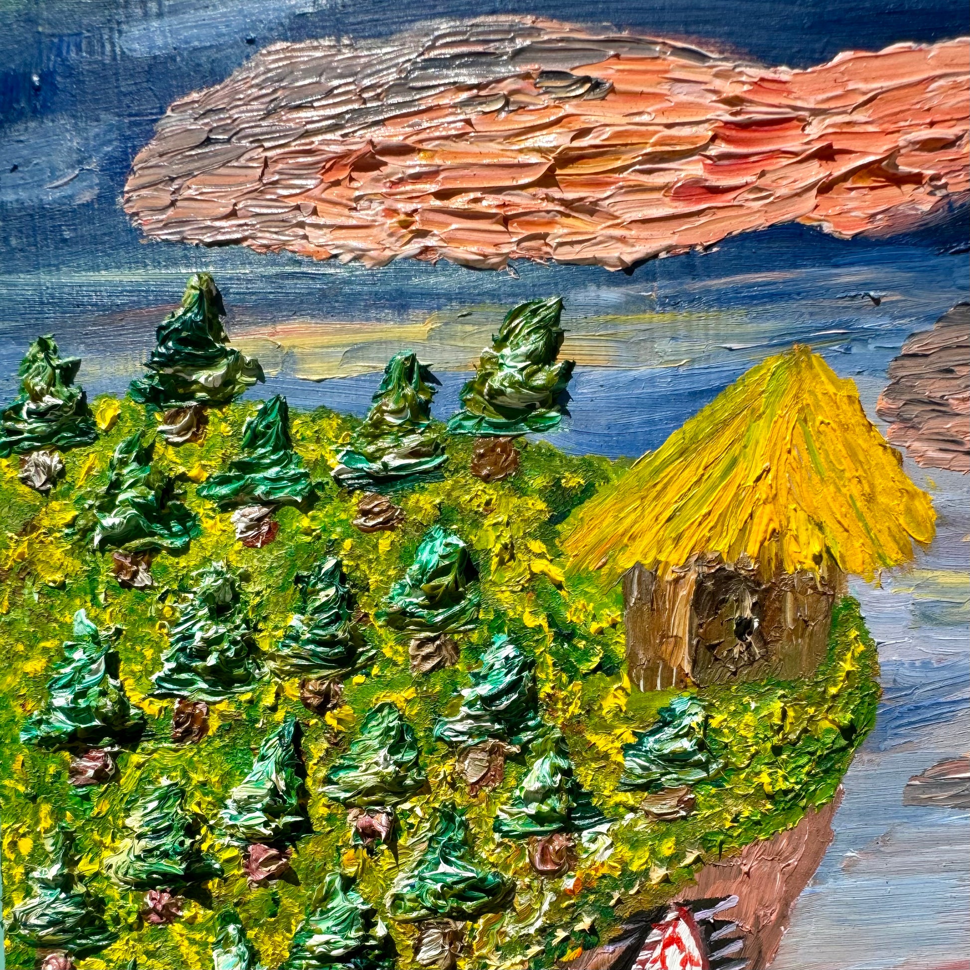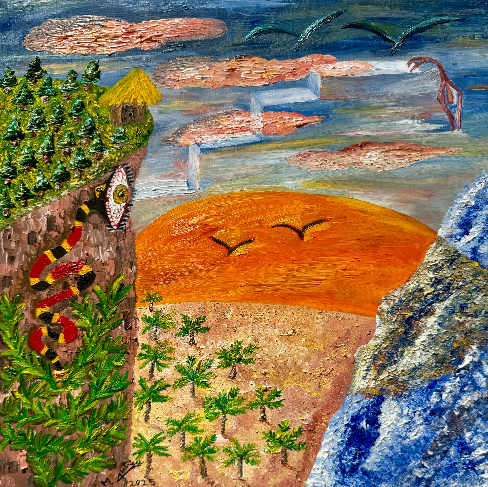 Esta fue la última obra que pinté mientras vivía en el Cuyo. Representa justo ese momento de transformación, el paso del mar al bosque, de una etapa a otra.